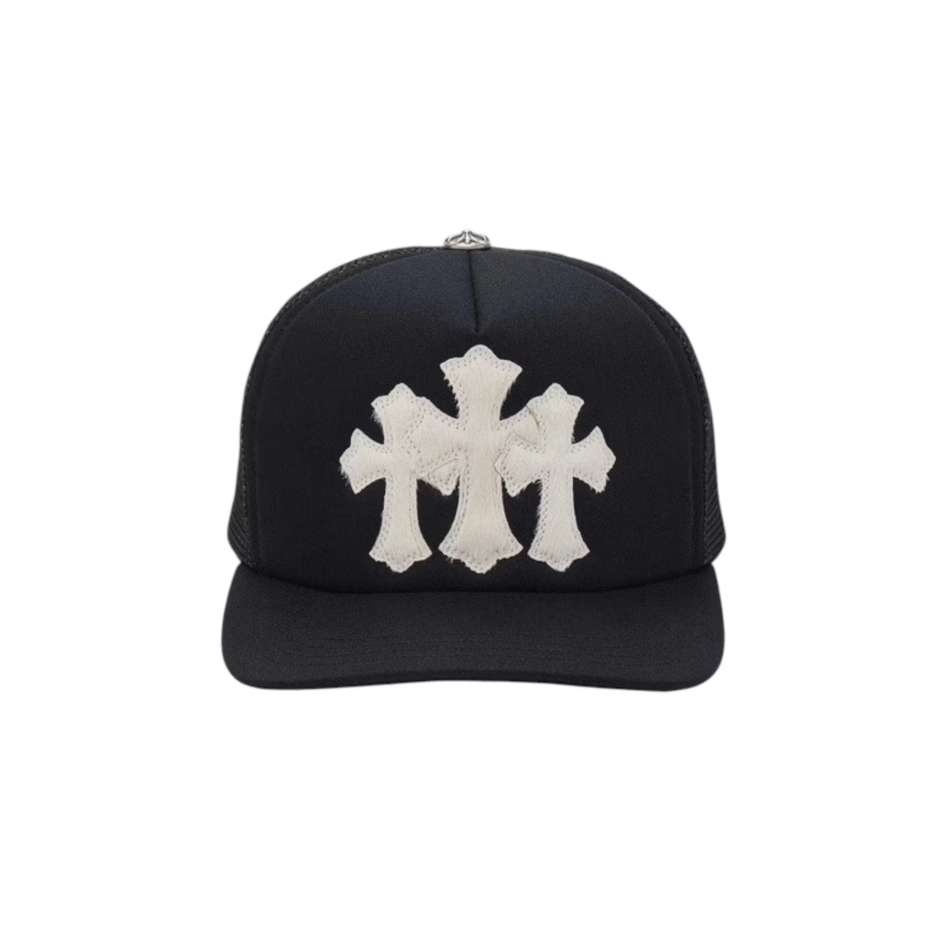 Chrome Hearts White Cemetary Cross (Pony Hair) CH Trucker Hat Black