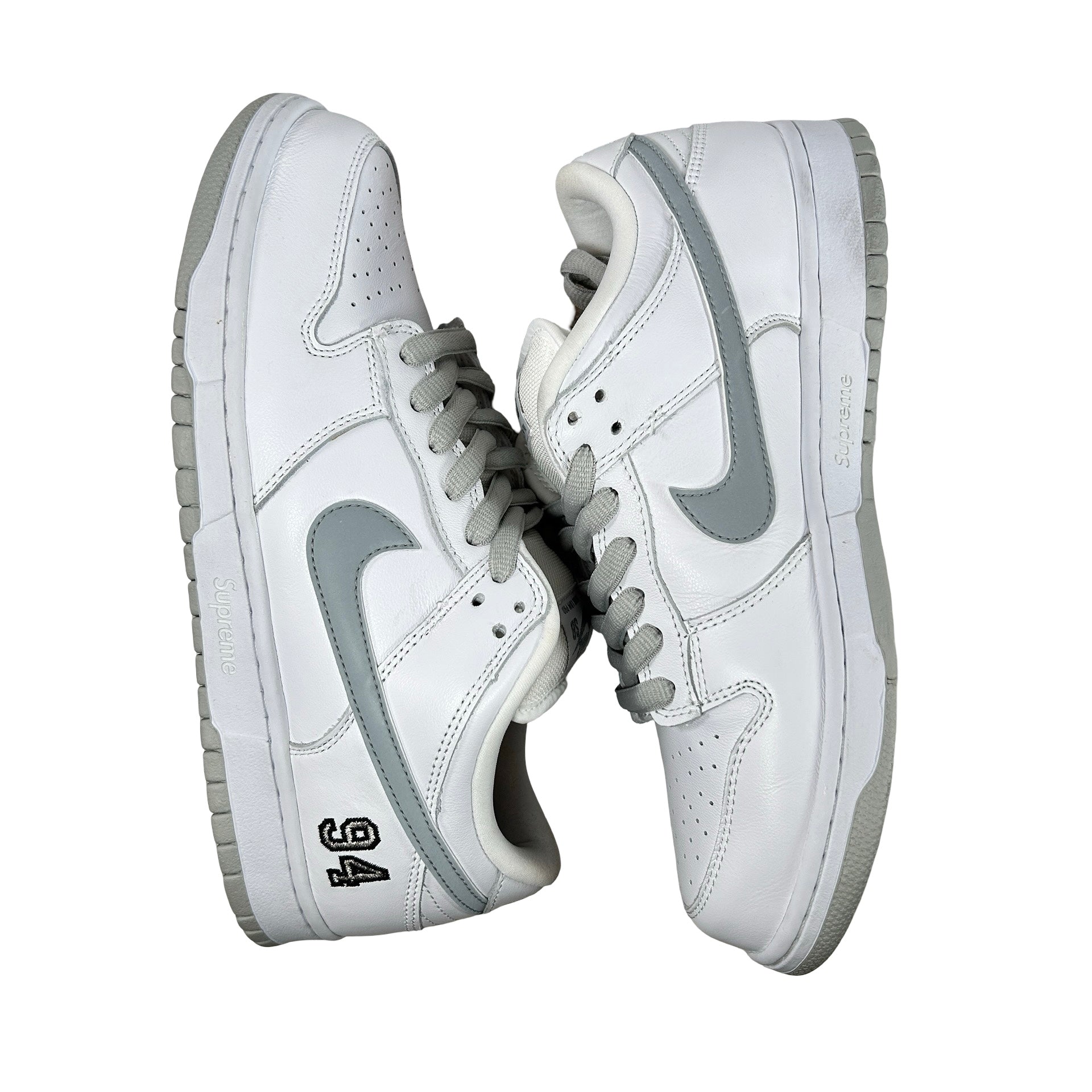 HQ8487 100 Nike SB Dunk Low Supreme 94 White Metallic Silver [USED] - 9.5 M (Used)