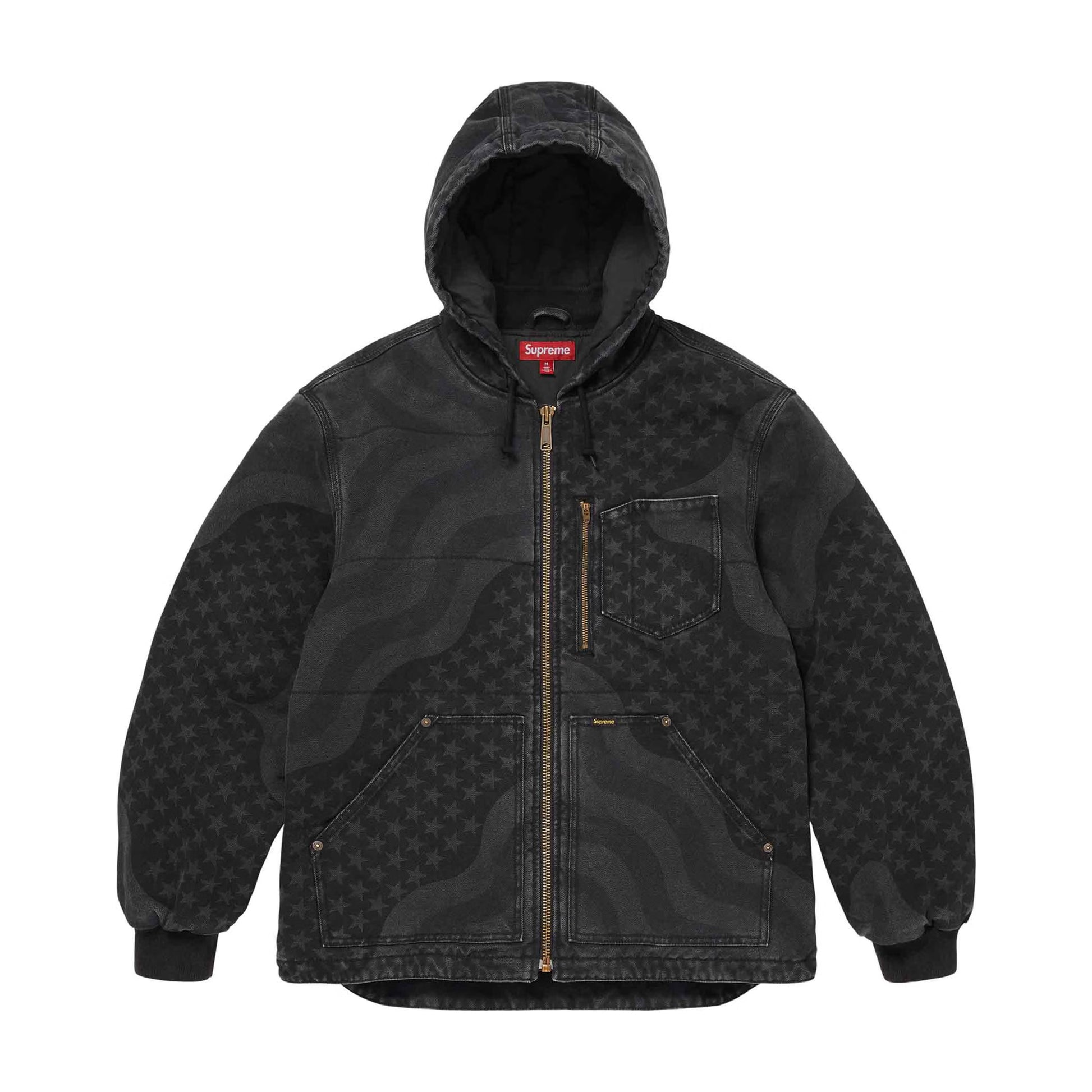 Supreme Flag Quilted Hooded Work Jacket Black